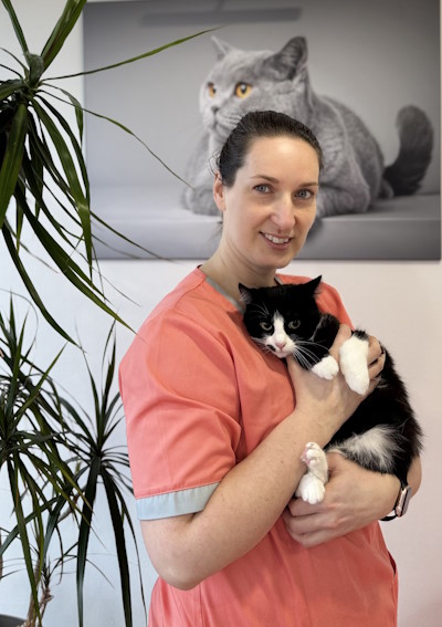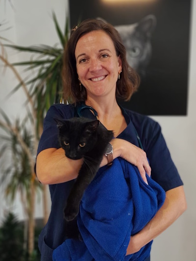 Le Docteur Cécile PIERRE a rejoint notre équipe début 2024. Sa passion pour les animaux l’a conduite naturellement vers ce métier. Ses domaines de prédilection sont essentiellement la médecine féline et la médecine interne mais également la chirurgie des tissus mous et la gériatrie animale. Elle est adepte du « cat / dog friendly » pour mettre les animaux en confiance et limiter leur stress en consultation !